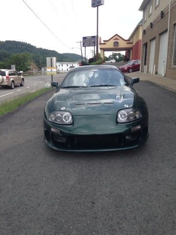 1996 Toyota Supra deep jewel green. 2jz twin turbo with 6 speed manual transmission motor has been changed to a japan motor. WE HAVE factory MOTOR and comes with car. Has target top. 29535zr18 yokojama tires with 18 inch blitz wheels in the rear and 27535zr18 in the front. Katzkin leather black suede in middle with black leather on outside with yellow stitching. Momo made in italy steering wheel, gearshift and pedals. Hks exhaust, Autometer boost, oil, and fuel pressure gauges. Aem fruel to air ratio gauge. Hks blow off valve. Pioneer avh-p8400bh radio double din 7 inch screen with jl audio c2 component speakers. acouple dings here and there