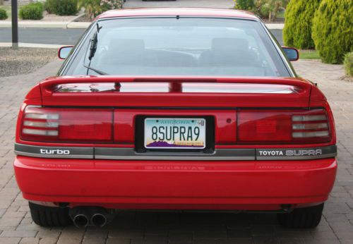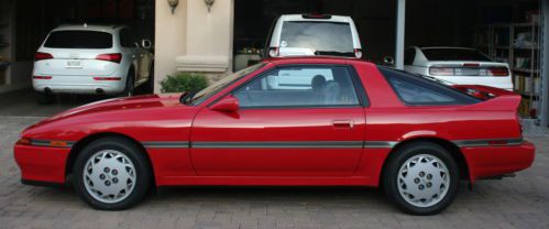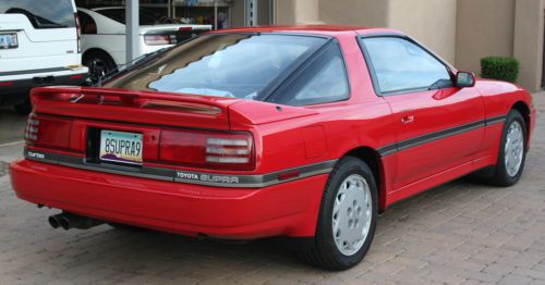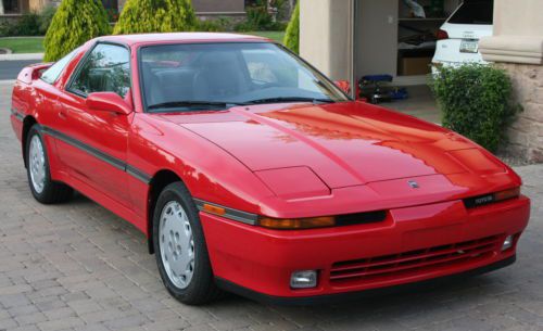 Up for sale is an incredibly clean and original red on gray leather manual transmission 1989 Toyota Supra Turbo with a Targa roof and the optional Sport Suspension Package. See below for a complete description of the car. I have a small private collection of sports cars from the 80's/90's and I have maxed out my storage location thus need to sell a car every time I buy one. In this case, I purchased a Buick GNX (on eBay) last week which has always been a dream car for me, but it means another car must go. The only reason I am choosing to sell the Supra is that it has the highest mileage of the cars in my collection and I have driven it the most since I have owned it. There is absolutely nothing wrong with the car...in fact, it is one of the cleanest in the collection irrespective of the miles. Please review the information below and contact me at 480-227-9850 if you have any questions.