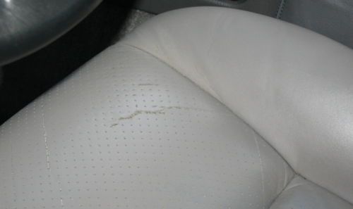 Interior: The interior is also amazing shape and looks/feels like new. The Gray leather is a fairly rare option and looks great with the red exterior. The leather is in great condition and shows little wear. In fact, only the driver's seat exhibits wear and it is minor...limited to the bolster and a scratch on the thigh support (see pic). The dash, bezels and interior trim is perfect and all gauges and lights work as new. The car has its original factory radio cassette with slave CD unit. The system works great but the display on the head unit is dim and difficult to read.