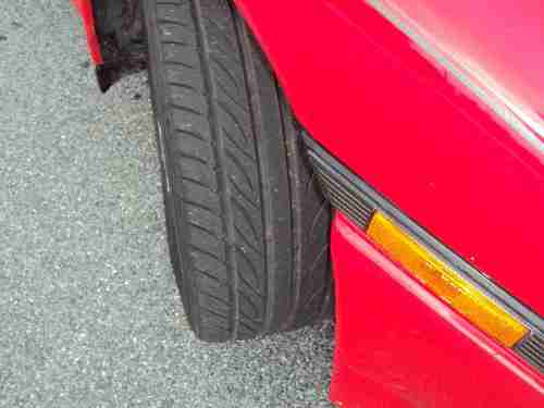 The exterior is a glossy bright red. The exterior is almost spotless. Check out the pictures. No rust due to the Autoshield undercoat and rust proofing. No windshield chips or cracks. The lights and lenses are bright, clear and no cracks. The tires, on alloy wheels, have about 30% tread.