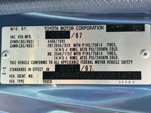 VIN (Vehicle Identification Number): JT4RN70D1J0051478