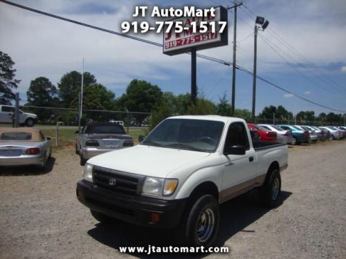 1998 TOYOTA TACOMA WITH 5 SPEED, 4WD, BED LINER, TOWING PACKAGE, AM FM CD PLAYER, MANUAL WINDOWS, AND MANUAL DOOR LOCKS!!! Hablamos Espaol!!Come test drive today! Please call 866-455-1157.Optional warranties offered.FREE CARFAX on ALL VEHICLES!! Apply for financing on our website, www.JTAUTOMART.comWE GIVE MILITARY DISCOUNTS!! Transportation and delivery services available. FREE SHUTTLE on a 50-mile radius! We accept Visa, MasterCard, Certified Check, and Bank Transfer for your convenience.Call, Click, or Stop by today!