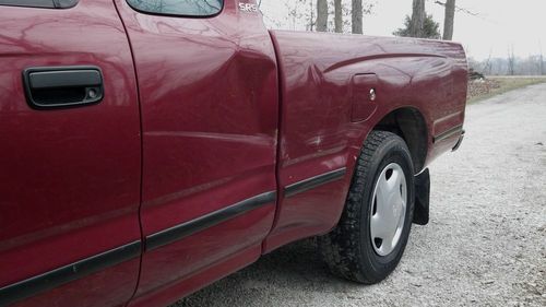 You are bidding on a 1998 Toyota Tacoma SR5 Truck, automatic, maroon color, one owner which was my father in law's. 4-cyl. auto, 116k miles, exteneded cab, bedliner, runs very well, serviced regularly. Truck has a dent in the rear driver's side fender. Has some scratches and dings from normal use. Interior is clean, although driver's side seat is starting to fray. New spare tire holder needs installed.
