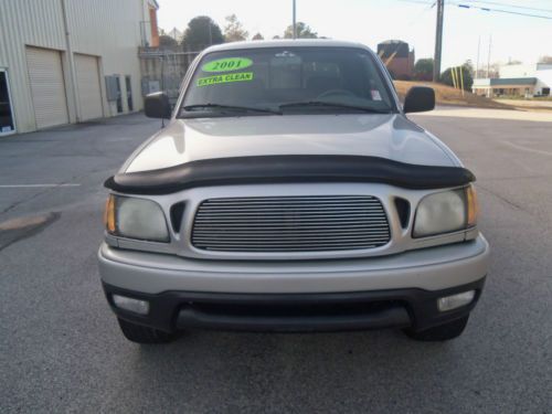 Here is a 2001 Toyota Tacoma Pre Runner TRD. This truck has the 3400 V6 with an automatic transmission. It has 179,000 miles on it which is nothing for these tough little trucks. The truck has a push button rear differential lock so the rear tires will turn at the same time if needed. It has a factory Toyota bedliner in great shape along with a hitch reciever and trailer light hookup. There are a few dings in the tailgate as shown in the pictures. Tires on the truck are about 50%. The interior of the truck is in good shape with minor problems. There are a couple places on the seat that did not break all the way through the fabric. They are only a problem if the look bothers you and then seat covers would be a quick fix. The window tint on the driver window has began to peel. Other than those two things, the interior is perfect. It has an Alpine aftermarket CD player/AM/FM radio. This is a reliable truck and it has no major problems! It is just ready for a new garage to pull into!