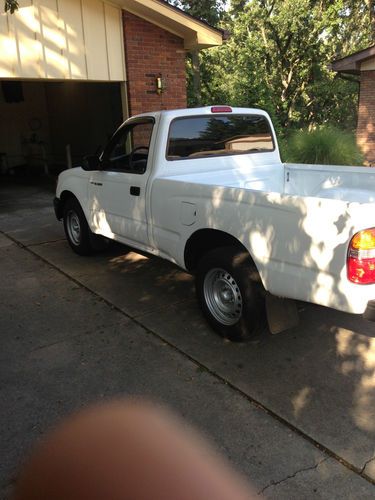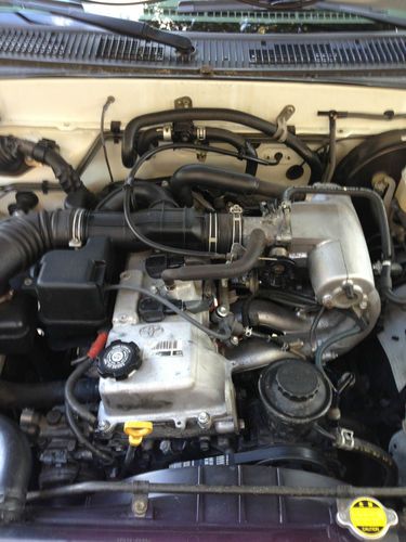 156000 miles. 4 cylinder, 5 speed transmission. New factory Tacoma floor mats and cup holder. Cold ac, power windows, locks, keyless entry, intermittent wipers, clock. New clutch pressure plate throw out bearing and slave cylinder. New radiator. New spark plugs. All 3 belts on engine are new.Tires are almost new, they have less than 1000 miles on them. New Pioneer AVH6300BT flip screen stereo with Bluetooth dvd player has sirius/xm radio module already installed also, service paid for till January 2014. Runs great! I bought from dealer about 3 months ago but decided I need something bigger to haul my 2 boys around. I put on the power windows, locks and the ac. I used factory parts when I did the ac system so it is exactly as it would have come from the dealer. Runs great and will for another 150000 in my opinion. Has some paint peeling/loss on corners of front bumper.
