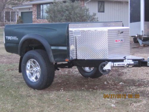 2003 Toyota Tacoma Trailer. Frame off build. Added cross members, black powder coated frame, rear receiver hitch, Linex box, custom rear roll pan, LED tail lights, side clearance markers. Tie Down Engineering 3,500 lb axle, two additional leaf springs per side, Timbrem blocks, 10" surge Tie Down Engineering slotted rotor disc brakes, 2" surge coupler trailer tongue, Delta diamond plate tool box, external frame mounted cargo tie downs (not shown in picture) Ultra 16" aluminum wheels, Michelin LTX MS2 tires, crank down undermount spare tire, Fulton aluminum tongue jack. Trailer meets Federal DOT standards. Minnesota trailer registration and Transfer of Ownership Registration included in sale. $14,350 professional build last year with full documentation. $3,900 Great work trailer and toy hauler. Pulls like a dream. This unit will not disappoint. Buy with confidence.
