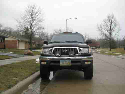 This 2004 TOYOTA TACOMA 4x4 DOUBLECAB TRD SR5 is in great condition. Exterior finished in dark green and very clean cloth interior. Runs and drives perfectly. Dealer maintained with records available. No accidents. Non-smoker, garaged kept. Equipped with 3.4L V6 engine, automatic transmission. SR5 package, TRD off-road package. All power options, Yakima roof rack. Sprayed-in bed liner. Dual sliding rear windows, towing package. Premium wheels with oversized tires. AM/FM CD player. Factory undercoated. Timing belt and water pump have been replaced by Toyota at recommended mileage, all fluids flushed on a regular basis by Toyota (includes transfer case, transmission, and oil changes).
