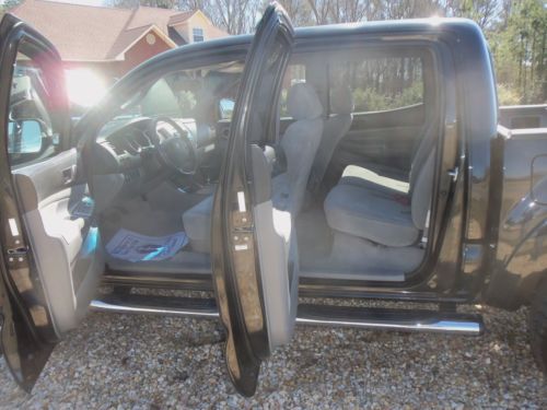 History: Up for sale is a 2006 Toyota Tacoma 4 door with approximately 136,000 miles. Truck has a previous reconstructed title in Tennessee and was repaired in 2008. The vehicle was purchased by a private individual in Tennessee. I have made several repairs to it. The reason for the previous owner selling the vehicle was due to a desired upgrade to a new Mercedes..... Truck is black metallic with light grey cloth interior. Condition: Truck is in excellent running condition. Interior is in great condition. I purchased new tires and many accessories. Includes tow package. Just had a front end alignment and showed no frame damage. The only visible damage is on the driver's side, inner front fender. I am adding a picture of the previous damage. Dents were knocked out instead of being replaced. The truck had small dings on the hood and the left quarter had scratches. They have been repaired with Matrix paint. Truck still has some minor dings that are hardly noticeable. Truck has been completely detailed inside and out. Truck has a low reserve.