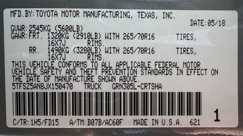 VIN (Vehicle Identification Number): 5TFSZ5AN8JX150470