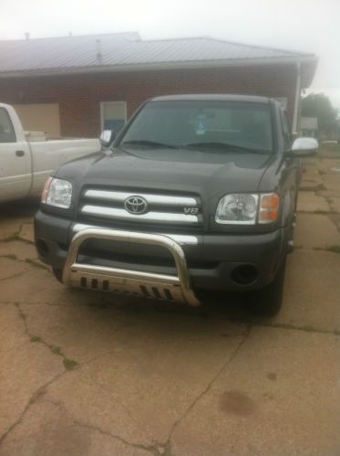 Up for sale is a Nice 2004 Toyota Tundra Grey SR5 Crew Cab 2WD truck with the automatic 4.7l V8 with a 131,000 miles. The truck does have excellent A/C and heat as well as a CD player. Does have fairly new tires, Brakes, and all maintence including oil changes have been done. I used this truck mostly for hauling and traveling on the interstate and highways. Truck has never given me any issues and still is a great truck. does not include toolbox. Please call 580-762-3332 or 580-765-3284 for more details.
