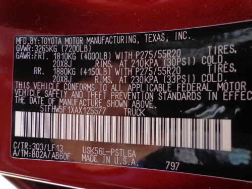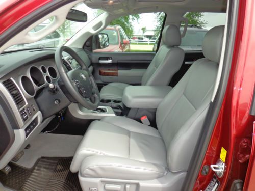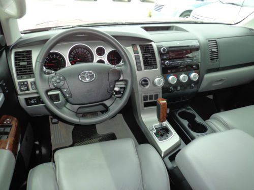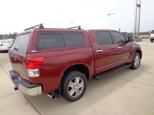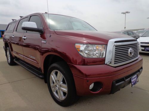 This CLEAN, GREAT LOOKING 2010 Toyota Tundra Limited 4WD was a local trade-in at our store, and comes LOADED with extras! It has a CLEAN Title and an ACCIDENT FREE History. Our Certified Service Department has fully inspected, serviced, and detailed this Tundra, and it pass with a clean bill of health! It is in excellent condition - And it is still covered by the remainder of it's Factory Powertrain Warranty until 7/08/2015 or 60000 MILES miles! This Tundra qualifies for an extended warranty as well, so if you are interested in getting Bumper to Bumper coverage, please inquire on costs! This Tundra comes packed with options, such as Premium Alloy Wheels, 4 Wheel Disc Anti-Lock Brakes, Side Running Boards, Body Matching Topper, FULL TOW PACKAGE, Premium LineX Spray On Bed liner, LEATHER Interior, Power Driver Seat, Automatic Headlights, JBL Audio System, POWER MOON ROOF, POWER Tilt and Telescoping Steering, Steering Mounted Audio and Phone Controls, CRUISE CONTROL, Front Bucket Seats, HEATED FRONT SEATS, Auto Dimming Rear View Mirror, HUGE Back Seat Space, USB Port for media players, BLUETOOTH for Hands Free Calling, SHIFT ON THE FLY 4x4 Controls, Trailer Brake Controller, Electronic Stability Control System, Side impact airbag system, and STILL MORE! This Tundra is in awesome condition inside and out! It's been VERY nicely maintained! Every thing on this Tundra works, and it's still under Warranty! It looks great with it's Custom Topper, and has all the truck equipment you need to tow, and tops of comfort and cargo space inside! ABOUT US Our Dealership is located in Mendota Illinois, about 12 miles north of I-80 on Rt 251, which runs parallel to I-39. We have been in business since 1945, and strive to take care of our customers! We are Better Business Bureau accredited, and our Finance Advisors are all AFIP (Association of Finance and Insurance Professionals) Certified. We have great ratings on Cars dot com, Yahoo, Google, so please feel free to check those out! This Tundra is for sale locally, so the auction may be canceled at any time. This Tundra is available for you to view and inspect in person before you bid, and we encourage you to stop out and test drive it or have it independently inspected! Any questions, please call or e-mail me. I am Nick Organ, the Sales Manager at SchimmerGM - call/text at 815-878-6594. "Hi! This is me, Nick Organ" A Full Vehicle History Report is available upon request, but here is the cover page that shows this Tundra it has a CLEAN TITLE and ACCIDENT FREE. PICK UP AND DELIVERY Shipping is available, and shipping quotes can be provided upon request. We utilize a nationwide shipping company that is insured and licensed, and can deliver your vehicle to where you would like. We encourage you to also seek out quotes from your own transport company to compared rates and delivery times. PAYMENT AND FINANCING Final ending price is PLUS tax (tax rate varies by state residency, and some state residency will not have to pay tax at time of purchase). A documentary fee of 166.27 is applied to all sales. Illinois Residents ONLY must pay TITLE FEE ($95) and LICENSE FEE ($25 for transfer of non-expired license plates, $101 for new plates). Out of State Residents ONLY must pay $10 for a 30-Day Driving Sticker. We offer FULL service Financing options, with nationally competitive financing rates. A credit application and credit approval are required. Loan terms as long as 78 Months are available, with rates as low as 1.9% Illinois Residents: Cash, check, financing, or credit are accepted (Credit Cards are limited to $2,000 of the total purchase price, and cash payment is limited to $9,999 of the total purchase price). OUT OF STATE Residents: Cash, Credit, Financing or Wire Transfer only (Credit Cards are limited to $2,000 of the total purchase price, and cash payment is limited to $9,999 of the total purchase price). WINNING BIDDER: A $500 Deposit is required to secure the vehicle. Failure to provide a deposit will cause the vehicle to be offered to the next highest bidder. THANK YOU AND WE LOOK FORWARD TO DOING BUSINESS WITH YOU! 2010 Toyota Tundra Limited - Standard EquipmentENGINE Specifications 5.7L Gas V8 Horsepower: 381 HP @ 5600 RPM Torque: 401 @ 3600 RPM Safety Air Bag-Frontal-Driver