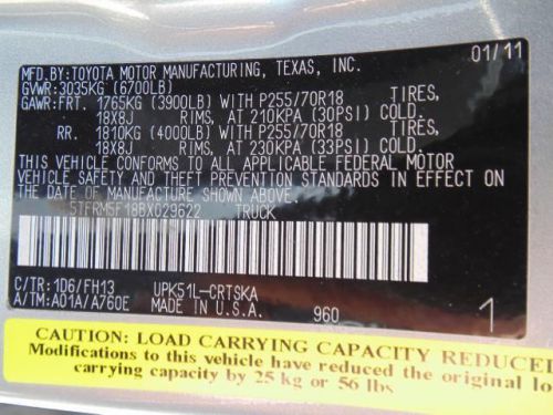 VIN (Vehicle Identification Number): 5TFRM5F18BX029622