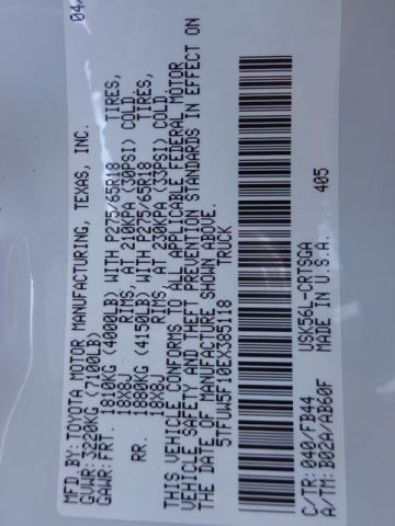 VIN (Vehicle Identification Number): 5TFUW5F10EX385118