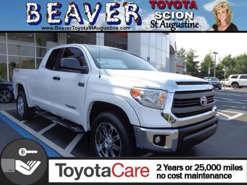 Imagine yourself behind the wheel of this beautiful 2014 Toyota Tundra. This truck is nicely equipped. This Tundra will save you money by keeping you on the road and out of the mechanic's garage. Super White 2014 Beaver Toyota Tundra SR5 is a 4D Double Cab 4WD . This Florida Truck has an i-Force 5.7L V8 Flex Fuel DOHC 32V LEV engine. Call right now and schedule a test drive. Ask for stock number X385118, the Florida 2014 Beaver Toyota Tundra . Shop Us Online at www.beavertoyotastaugustine.com. Serving Jacksonville, Palm Coast, Daytona, Gainesville and St Augustine. Beaver Toyota St Augustine on 2995 US Hwy 1 South in St Augustine.