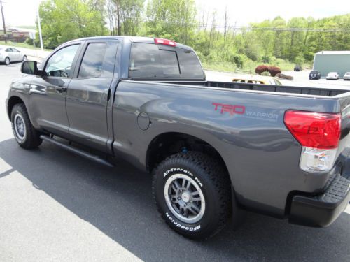 YOUTUBE VIDEO ORIGINAL WINDOW STICKER LIST MECHANICAL & PERFORMANCE WARRANTY SINCE THIS IS TOYOTA CERTIFIED, THE NEW OWNER WILL RECEIVE 7 YEAR / 100,000 MILE POWERTRAIN WARRANTY AND IS VALID FROM THE ORIGINAL SALE DATE WHICH WAS DECEMBER 20TH, 2012. YOU WILL ALSO RECEIVE A 12 MONTH / 12,000 MILE COMPREHENSIVE WARRANTY FROM THE DAY 'YOU' PURCHASE THE VEHICLE. WE ALREADY COMPLETED ALL RECOMMENDED SERVICE INCLUDING (4) BRAND NEW TIRES AND OUR 160 POINT TOYOTA INSPECTION AND COMPLETED A FRESH OIL CHANGE AND NEW STATE INSPECTION FOR THE NEW OWNER! CONDITION WOW, WHAT A SHARP, EXTREMELY CLEAN & BEAUTIFULLY MAINTAINED 2013 TOYOTA TUNDRA DOUBLE CAB 5.7 TRD ROCK WARRIOR 4X4 IN MAGNETIC GRAY METALLIC PAINT AND 46,040 ORIGINAL 1-OWNER MILES. BEAUTIFULLY MAINTAINED AND INTERIOR IS EXCELLENT AND WAS A NON-SMOKER'S VEHICLE. THE PREVIOUS OWNER WAS A MATURE GENTLEMAN AND ALL SERVICE WAS COMPLETED BY A MASTER CERTIFIED TOYOTA TECHNICIAN. TIRES ARE BRAND NEW WHICH WE JUST INSTALLED FOR THE NEW OWNER. BODY IS CLEAN AND FREE OF ANY MAJOR DINGS, SCRATCHES OR DENTS. I WOULD PERSONALLY RATE THIS TOYOTA A 9.999 ON A 1-10 SCALE. I COULD ONLY FAULT THIS TRUCK FOR A FEW ROCK CHIPS ON THE LOWER FRONT BUMPER AND I POINTED THESE OUT IN THE VIDEO. VERY VERY MINOR BUT I LIKE TO PROVIDE A VERY THOROUGH INSPECTION FOR ALL OF MY EBAY LISTINGS. THIS TOYOTA IS A CLEAN TITLE VEHICLE WITH A CLEAN CARFAX WHICH WE INCLUDED WITH THIS LISTING AND THE ENTIRE HISTORY REPORT CAN BE EMAILED UPON REQUEST. OVERALL THIS IS A SUPER CLEAN AND WELL MAINTAINED TOYOTA CERTIFIED TUNDRA ROCK WARRIOR. I PERSONALLY INSPECTED THE VEHICLE AND TEST DROVE THIS TUNDRA AND IT FEELS LIKE NEW. IF YOU ARE SEARCHING FOR A CLEAN, BEAUTIFULLY MAINTAINED TUNDRA DOUBLE CAB TRD ROCK WARRIOR 4X4 WITH ALL THE TOYS IN A GREAT COLOR, THIS IS YOUR NEW TRUCK! JUST SERVICED AND READY TO GO! WE HAVE ORIGINAL WINDOW STICKER INFORMATION, ORIGINAL FLOOR MATS AND ALL OWNER'S MANUALS FOR THE NEW OWNER! BE SURE TO VIEW ALL 24 PHOTOS ALONG WITH FREE CARFAX REPORT! TAKE ADVANTAGE OF THE NO CHARGE 100,000 MILE TOYOTA WARRANTY! 1-OWNER! CERTIFIED! ABSOLUTE CREAM PUFF! 2.9% FOR 60 MONTHS! CARFAX SUMMARY