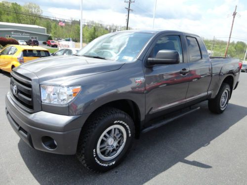 THANK YOU FOR VIEWING OUR BEAUTIFUL, 1-OWNER, 100% CARFAX CERTIFIED, TOYOTA CERTIFIED WHICH COMES WITH A 7 YEAR / 100,000 MILE TOYOTA POWERTRAIN WARRANTY PLUS A 12 MONTH / 12,000 MILE COMPREHENSIVE WARRANTY PLUS A LOW 2.90% APR UP TO 60 MONTHS, 2013 TOYOTA TUNDRA DOUBLE CAB 5.7L V8 4X4 TRD ROCK WARRIOR EDITION 4X4 WITH REAR BACK UP CAMERA, 17" FORGED ALLOY WHEELS, STEP BARS, (4) BRAND NEW TIRES, ETC IN MAGNETIC GRAY METALLIC PAINT WITH BLACK SPORT FABRIC SEATS AND 46,040 ORIGINAL 1-OWNER MILES! WE ARE A TOYOTA DEALERSHIP IN WESTERN PENNSYLVANIA AND WE ARE OFFERING THIS CERTIFIED TUNDRA 4X4 TRD ROCK WARRIOR AT A SPECIAL, DISCOUNTED 'BUY IT NOW' PRICE ON EBAY FOR A VERY LIMITED TIME. PLEASE VIEW THE COMPLETE LISTING INCLUDING 24 PHOTOS ALONG WITH A DETAILED VEHICLE DESCRIPTION ALONG WITH THE CLEAN CARFAX REPORT. THERE IS A 3 MINUTE YOUTUBE VIDEO SHOWING THIS TRUCK INSIDE & OUT BELOW, JUST CLICK TO START. WE ALSO INCLUDED THE ORIGINAL WINDOW STICKER INFORMATION BELOW. PLEASE CONTACT SCOTT LONG @ (866)226-0570 OR (814)659-1908 OR EMAIL TO LAUFORD@AOL.COM WITH ANY QUESTIONS. THANK YOU FOR VIEWING AND BE SURE TO VIEW ALL OF OUR EBAY LISTINGS ALONG WITH OUR 100% POSITIVE FEEDBACK!