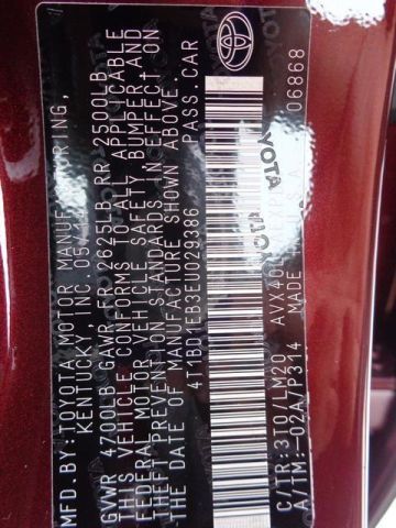 VIN (Vehicle Identification Number): 4T1BD1EB3EU029386