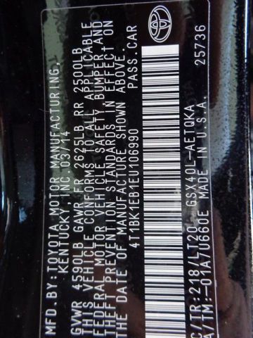 VIN (Vehicle Identification Number): 4T1BK1EB1EU106990