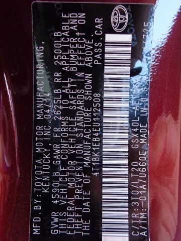 VIN (Vehicle Identification Number): 4T1BK1EB4EU112508