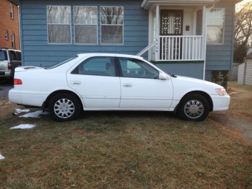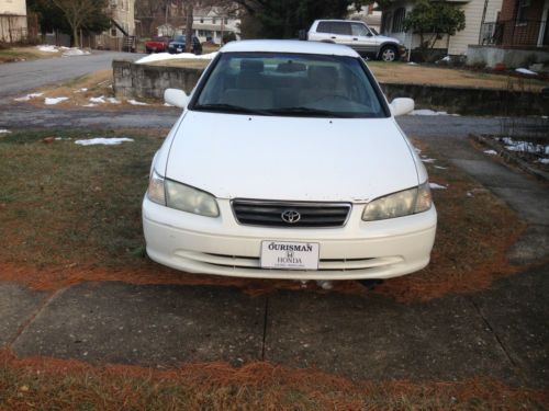 Up for sale is a 2001 Toyota Camry Le. Car is 4 Door, automatic, 4 cylinder. The color is white and the interior is silver. It has a/c,