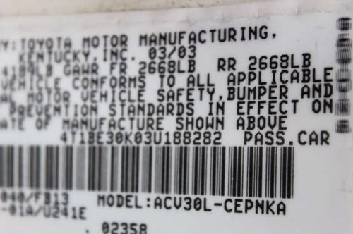 VIN (Vehicle Identification Number): 4T1BE30K03U188282