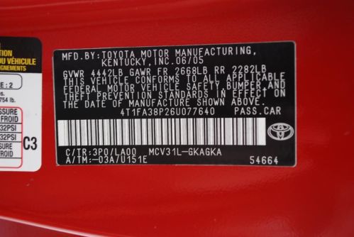 4dr sedan v6 automatic xle low miles automatic gasoline 3.5l v6 cyl super white(US $16,995.00)