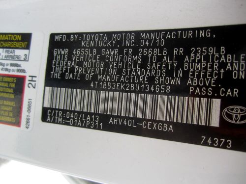 VIN (Vehicle Identification Number): 4T1BB3EK2BU134658
