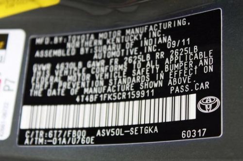 VIN (Vehicle Identification Number): 4T4BF1FK5CR159911
