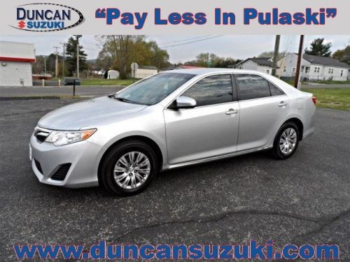Camry LE and Cloth. What a price for a 13! Toyota has done it again! They have built some great vehicles and this outstanding 2013 Toyota Camry is no exception! With a precision-tuned 2.5L I4 SMPI DOHC powerplant, this car will wring every last mile it can out of a drop of fuel. This Camry is nicely equipped with features such as Camry LE, Cloth, 4-Wheel Disc Brakes, 6 Speakers, ABS brakes, Air Conditioning, AM/FM radio, Brake assist, Bumpers: body-color, CD player, Delay-off headlights, Driver door bin, Driver vanity mirror, Dual front impact airbags, Dual front side impact airbags, Electronic Stability Control, Fabric Seat Trim, Four wheel independent suspension, Front anti-roll bar, Front Bucket Seats, Front Center Armrest, Front reading lights, Fully automatic headlights, Illuminated entry, Knee airbag, Low tire pressure warning, MP3 decoder, Occupant sensing airbag, Outside temperature display, Overhead airbag, Overhead console, Panic alarm, Passenger door bin, Passenger vanity mirror, Power door mirrors, Power steering, Power windows, Rear anti-roll bar, Rear seat center armrest, Rear side impact airbag, Rear window defroster, Remote keyless entry, Speed control, Speed-sensing steering, Split folding rear seat, Steering wheel mounted audio controls, Tachometer, Telescoping steering wheel, Tilt steering wheel, Traction control, Trip computer, and Variably intermittent wipers. To Check Availability, Schedule a Test Drive or Receive the "Special" Internet E-Price please ask for Kyle Irvin at 888-768-4668 and remember to "PAY LESS IN PULASKI" To Check Availability, Schedule A Test Drive or Receive the "Special" Internet E-Price please ask for Kyle Irvin at 888-768-4668 and remember to "PAY LESS IN PULASKI"