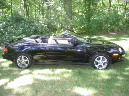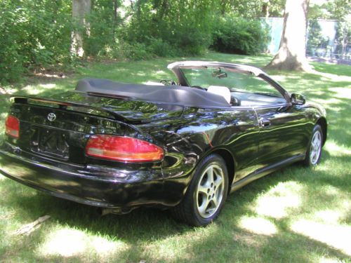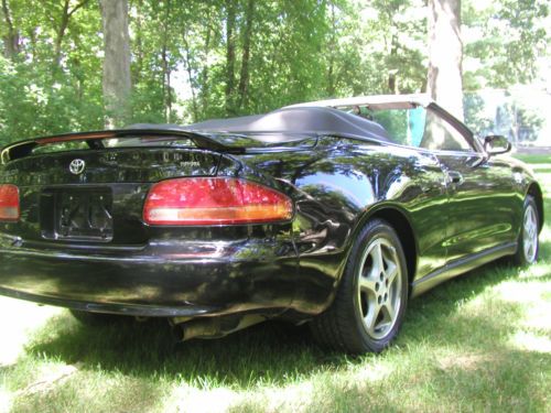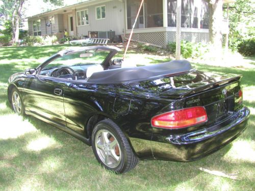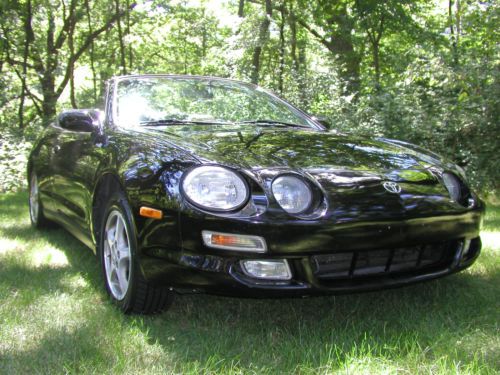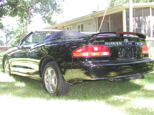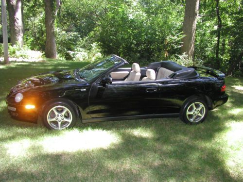 You are looking at a 1997 Toyota Celica GT Convertible. I'm sure you have heard this before but honestly this car runs, drives, brakes, handles and steers like a new one. I bought this car over a year or so ago because this is the body style of Celica that my daughter liked. But now she just had her second child and she says there is no way that she can put both of them in the car. Before I gave it to her I had it all checked out and maintained by a Toyota dealership. Checked out good except the park brake needs new cables. Which is common on automatic transmissions because they are never used and the cable corrodes and becomes stuck and won't move. I did not repair that. All other brakes were as new, front and rear. Aside from a cleaning the top functions perfect and has no leaks, rips, snags or tears. The factory alloy wheels have some corrosion on them, see picture. Zero rust, dents or scratches. Couple small rock chips in front bumper cover, if I did not say anything you more then likely would not notice. The A/C needed charged, it had a leak in the condenser so I had it replaced. Now A/C blows ice cold. At 140000 I was told it had a 77000 engine put in it with new timing belt and water pump. Car has no leaks at all. I believe the mileage on the engine to be correct so does the Toyota dealer. The car performs flawlessly in every way including the automatic transmission. Stereo has tape and CD all factory sounds great like new. Has brand new leather seat covers. Front and rear. Look to be factory like new. Tires are like new. The car also has a Alarm system with a remote start, seems to function perfect. Car has absolutely no issues. This is a seriously beautiful car. There will be no disappointments at all. The car is priced to sell. I just have to many cars. Please fell free to call and ask me any questions at all. My name is Randell Carr 1-309-269-1203
