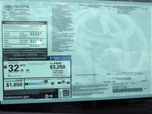 1 12V DC Power Outlet,1 Seatback Storage Pocket,4-Way Passenger Seat,CLOTH SEATS 60-40 Folding Bench Front Facing Fold Forward Seatback Premium Cloth Rear Seat,6-Way Driver Seat,Air Filtration,Analog Display,Automatic Air Conditioning,Cargo Space Lights,Carpet Floor Trim and Carpet Trunk Lid/Rear Cargo Door Trim,Cloth Door Trim Insert,Cruise Control,Day-Night Rearview Mirror,Delayed Accessory Power,Driver And Passenger Visor Vanity Mirrors,Driver Foot Rest,Engine Immobilizer,Fade-To-Off Interior Lighting,FOB Controls -inc: Trunk/Hatch/Tailgate,Front Bucket Seats -inc: 6-way adjustable drivers seat and 4-way adjustable front passenger seat,Front Center Armrest,Front Cupholder,Front Map Lights,Full Carpet Floor Covering,Full Cloth Headliner,Full Floor Console w/Covered Storage and 1 12V DC Power Outlet,Gauges -inc: Speedometer, Odometer, Engine Coolant Temp, Tachometer, Trip Odometer and Trip Computer,HVAC -inc: Underseat Ducts,Instrument Panel Covered Bin, Driver / Passenger And Rear Door Bins,Interior Trim -inc: Piano Black Instrument Panel Insert, Metal-Look Console Insert and Chrome Interior Accents,Locking Glove Box,Manual Tilt/Telescoping Steering Column,Manual Type Adjustable Front Head Restraints and Manual Adjustable Rear Head Restraints,Outside Temp Gauge,Power 1st Row Windows w/Driver 1-Touch Up/Down,Power Door Locks w/Autolock Feature,Power Rear Windows,CLOTH SEATS Premium Cloth Front Seats w/Cloth Back Material,Rear Cupholder,Remote Keyless Entry w/Integrated Key Transmitter, Illuminated Entry and Panic Button,Remote Releases -Inc: Mechanical Trunk/Hatch and Mechanical Fuel,Trip Computer,Urethane Gear Shift Knob,Auto Off Projector Beam Led Low Beam Daytime Running Headlamps w/Delay-Off,Black Grille,Body-Colored Door Handles,Body-Colored Front Bumper,Body-Colored Power Heated Side Mirrors w/Manual Folding,Body-Colored Rear Bumper,Chrome Side Windows Trim,Clearcoat Paint,Compact Spare Tire Mounted Inside Under Cargo,Fixed Rear Win Get a FREE Car Detail with vehicle purchase!
