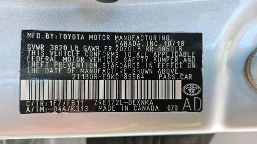 VIN (Vehicle Identification Number): 2T1BURHE9KC189564