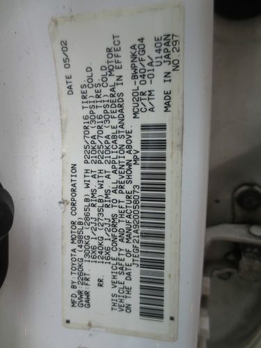 2001 toyota highlander limited 4x4 1 owner no accidents lthr sunroof no reserve