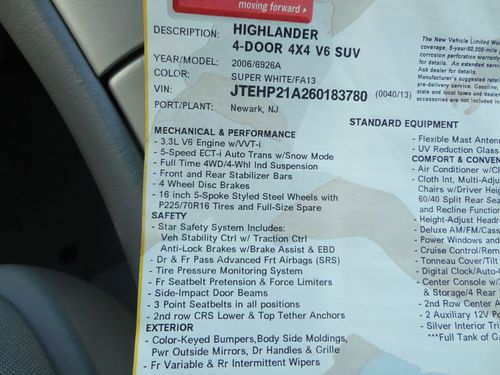 06 Highlander V6 4wd Super White One Owner We Sold New Clean Carfax Video 4x4 on 2040-cars