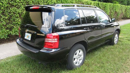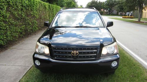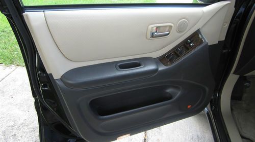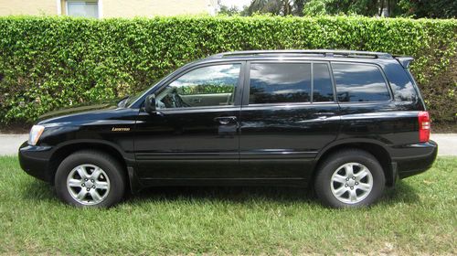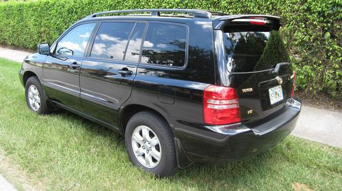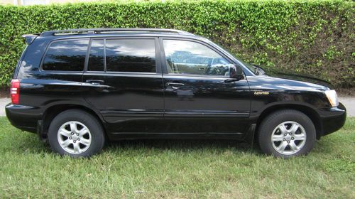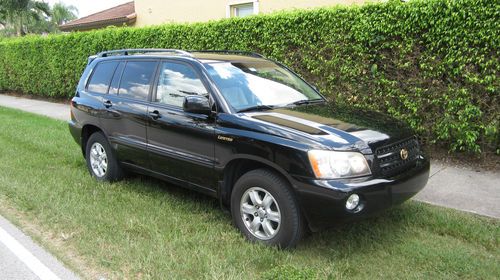 I have for your consideration a 2002 Toyota Highlander Limited FWD SUV. Finished in Rich Ebony Black with Sandstone leather trimmed interior. This was the flagship Highlander. All the bells and whistles including Moonroof, climate control AC, Perforated leather, power everything and too much more to list. The interior in this SUV is breathtaking in every detail...rich sumptuous leathers and high end trim everywhere...this baby looks to me every bit as nice as any Lexus. My wife is the second owner, has pampered and enjoyed this beauty for over 40000 miles. All original paint work and body parts. As straight as they come. Not perfect, a nick here and a ding there but all original. We have serviced the engine with Mobil One Synthetic oil every 5000 miles. Never any rough stuff and this beauty shows it...just look carefully at the pictures and I am sure you will agree. I just put a set of brand new Eco-friendly Yokohama Avid Ascend BluEarth Tires on the SUV. Awesome tires! New AAA 3 year free replacement Battery too. This one is ready to go. South Florida born and raised...easy winters and lots of sunshine. I am located in Miami, Florida. The car is located in Miami, Florida. The clean title is located in Miami, Florida. I have this SUV for sale locally and reserve the right to end this auction at any time. I would be pleased to consider your offer for immediate purchase so call me. I would consider a trade.Call me with any questions or concerns. Call Bruce now at 305-244-5790.