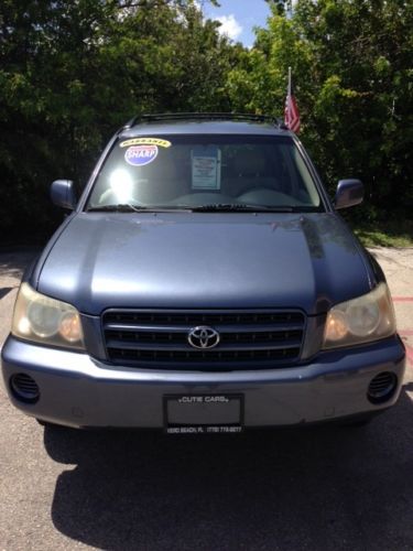This 2003 Toyota Highlander 4x4 is being offered with power locks, power windows, sun roof, alloy wheels, ice cold a/c,very clean interior,nice paint and much much more . It runs great with ice cold a/c. The all wheel drive works fine and it has a button for "ECT Snow". The tires are ok but not new. There are some small paint chips in the hood which are hardly visible but I mention them anyway as well as a faint scratch in the rear bumper. You probably won't need to touch them up unless you are really fussy. Look at the pictures, decide if you want a clean 4 wheel drive for a lot less than NADA retail, call us with any questions then bid with confidence. We are a dealer and the car is available locally so we reserve the right to end the sale if someone buys it. There is a 249.99 dealer fee that you should remember when bidding. Good luck . Phone 772-778-2277. By the way......an extended service contract is available for purchase. This car has been serviced with fresh oil, filter and wiper blades. |