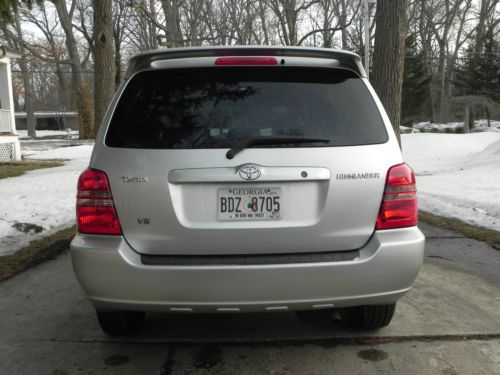 I am selling my 2003 Toyota Highlander Limited Edition. The car is very clean inside and out,the tires are in good shape as well. We moved to Indiana in 2013 from Georgia, so the car has a Georgia title, it is the first year the car has seen snow. No rust what so ever on the body nor the frame. Mechanically is in perfect condition with everything and every function in working condition.We extended our family and purchased just recently a minivan, that is the only reason we are selling it. A $500 deposit required via Pay-Pal soon after winning bid and cash for the remaining balance no later than 7 days after biding is over.Please let me know if you need any additional information. I am listing the car locally as well,so I hope you get it before I sell it locally.Good luck.