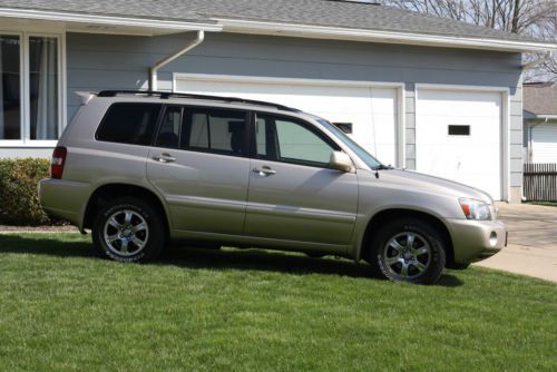 You are looking at the smooth and beautiful 2007 Toyota Highlander, FWD, V-6, 3.3L engine. Gold with a tan leather interior, it has 118,700 miles and an automatic transmission. Toyota's are one of the most unique vehicles on the road; they are fast, fun to drive, and rare. This one is in outstanding condition. No cosmetic flaws inside or out and just a few tiny stone chips on the nose. No known mechanical problems. The leather seats are not ripped or marked and have a minimal amount of wear on them. The dash and shift console are spotless. The carpets are in great condition. The alloy wheels are perfect. This Toyota is loaded with options including: power steering, power door locks, power windows, air conditioning, AM/FM stereo with CD Player, large 10" DVD player with headphones and remote, 6 air bags, ABS, traction control, sunroof, roof racks, and cruise control. I have 2 keys, 2 keyless remotes and all the original owner's manuals. Please call Dale at 330-204-9229 for more information.
