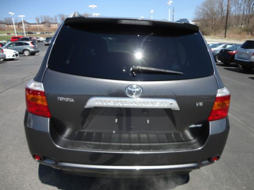 THANK YOU FOR VIEWING OUR BEAUTIFUL, 1-OWNER WHICH WE SOLD BRAND NEW, 100% CARFAX CERTIFIED, 2008 TOYOTA HIGHLANDER 4WD LIMITED V6 WITH HEATED LEATHER SEATS, POWER MOONROOF, POWER LIFTGATE, REAR BACK UP CAMERA, BLUETOOTH, THIRD ROW SEATING, REAR A/C, JBL 6-DISC CD CHANGER, ETC IN MAGNETIC GRAY METALLIC PAINT AND GRAY HEATED LEATHER SEATS WITH 86,489 ORIGINAL 1-OWNER MILES! WE ARE A TOYOTA DEALERSHIP IN WESTERN PENNSYLVANIA AND WE ARE OFFERING THIS FULLY LOADED HIGHLANDER LIMITED 4WD AT A SPECIAL, DISCOUNTED 'BUY IT NOW' PRICE ON EBAY FOR A VERY LIMITED TIME. PLEASE VIEW THE COMPLETE LISTING INCLUDING 24 PHOTOS ALONG WITH A DETAILED VEHICLE DESCRIPTION ALONG WITH THE CLEAN CARFAX REPORT. BELOW IS A 3 MINUTE YOUTUBE VIDEO SHOWING THE COMPLETE VEHICLE INSIDE & OUT, JUST CLICK TO START VIDEO. WE ALSO INCLUDED THE ORIGINAL WINDOW STICKER WITH THE PHOTOS & VIDEO PROVIDED. PLEASE CONTACT SCOTT LONG @ (866)226-0570 OR (814)659-1908 OR EMAIL TO LAUFORD@AOL.COM WITH ANY QUESTIONS. THANK YOU FOR VIEWING AND BE SURE TO VIEW ALL OF OUR EBAY LISTINGS ALONG WITH OUR 100% POSITIVE FEEDBACK!
