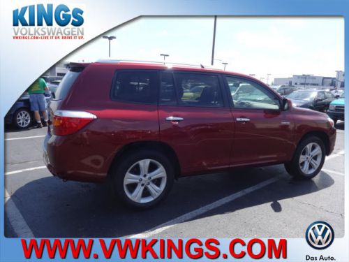 AWD, ABS brakes, Alloy wheels, Auto-dimming Rear-View mirror, Compass, Driver door bin, Driver vanity mirror, Electronic Stability Control, Front dual zone A/C, Front reading lights, Heated door mirrors, Illuminated entry, Leather Seat Trim, Low tire pressure warning, Outside temperature display, Overhead console, Passenger vanity mirror, Rear reading lights, Remote keyless entry, Tachometer, Telescoping steering wheel, Tilt steering wheel, Traction control, and Trip computer. Toyota has outdone itself with this superb 2008 Toyota Highlander. It just doesn't get any better at this price! With the low mileage and meticulous upkeep on this Highlander, you can count on hearing the purr of its engine for years to come. This SUV is nicely equipped with features such as AWD, ABS brakes, Alloy wheels, Auto-dimming Rear-View mirror, Compass, Driver door bin, Driver vanity mirror, Electronic Stability Control, Front dual zone A/C, Front reading lights, Heated door mirrors, Illuminated entry, Leather Seat Trim, Low tire pressure warning, Outside temperature display, Overhead console, Passenger vanity mirror, Rear reading lights, Remote keyless entry, Tachometer, Telescoping steering wheel, Tilt steering wheel, Traction control, Trip computer, 3.48 Axle Ratio, 3rd row seats: bench, 4-Wheel Disc Brakes, 6 Speakers, Air Conditioning, AM/FM radio, AM/FM/6 CD Changer/6 Speakers, Anti-whiplash front head restraints, Automatic temperature control, Brake assist, Bumpers: body-color, CD player, Delay-off headlights, Dual front impact airbags, Dual front side impact airbags, Four wheel independent suspension, Front anti-roll bar, Front Bucket Seats, Front Center Armrest, Front fog lights, Fully automatic headlights, Garage door transmitter: Homelink, Knee airbag, MP3 decoder, Occupant sensing airbag, Overhead airbag, Panic alarm, Passenger door bin, Power door mirrors, Power driver seat, Power passenger seat, Power steering, Power windows, Rear anti-roll bar, Rear window defroster, Rea Thanks for looking at our vehicle. We look forward to working with you either over the internet, phone or directly in person. Come to our all-new expanded facility in the Kings Auto Mall& have a great car buying experience. We're easy to find and easier to love! Great vehicles at a better value @ Cincinnati's #1 VW World Auto Certified Pre Owned Dealer!