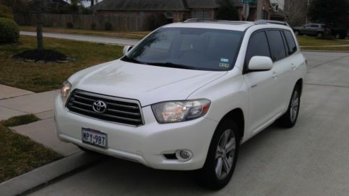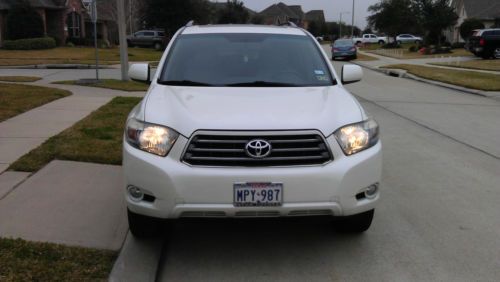 UP FOR AUCTION IS MY MOMS 08 HIGHLANDER,I WILL TRY TO TELL YOU ALL I KNOW ABOUT IT,SHE BOUGHT BRAND NEW AT STAR TOYOTA IN LEAGUE CITY,INSIDE AND OUT IN IMMACULATE AND SUPER CLEAN,PARENTS ARE NON SMOKERS AND ALWAYS BEEN GARAGED,TIRES ARE IN GREAT SHAPE,EVERYTHING WORKS,LEATHER INTERIOR,SUNROOF,V6,THIS CAR HAS BEEN BABIED,MY MOM DRIVES LIKE A GRANDMA,PAINT IN EXCELLENT SHAPE,ALLOY WHEELS,SOFT YOTA LEATHER,3RD ROW SEATING,ANY MORE QUESTIONS PLEASE CALL AND I WILL DO MY BEST TO ANSWER ANY QUESTIONS,HIGHLANDER STILL UNER EXTENDED TOYOTA WARRANTY TILL END OF JAN.,MORE INFO 832-877-1031 LOW RESERVE AND HAPPY BIDDING!!!!!