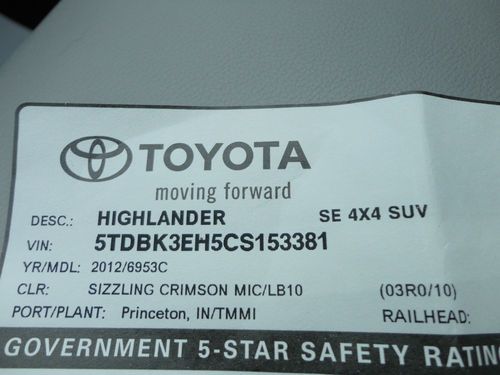 2012 Highlander Se 4wd Heated Leather Sunroof 4x4 12k Toyota Certified Video Awd on 2040-cars