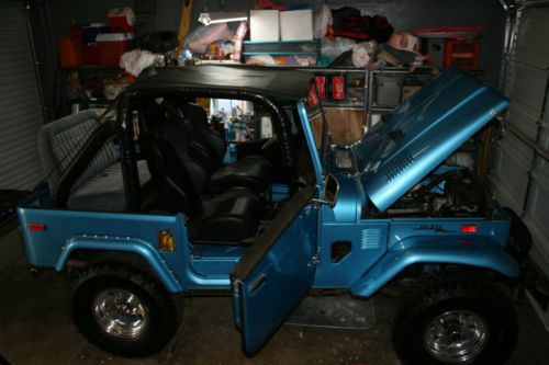 For Sale is my 1973 Toyota Land Cruiser FJ 40 Vin #Fj40147685 Ca plate#5gsr187. This FJ has been in storage for about 30 years it was restored later in its life. It had a GM drive train conversion and now boast a GM 327 V8 with 202 fuelly heads, cam, Eldebrock intake and gm T pipe exhaust, 4barrel quad carb, dual exhaust with glass packs, Turbo 400 automatic transmission, hurst shifter, Saginaw power steering box, Gm Tilt Steering wheel, 30 spline front axle with power disc brakes, Warn Manual locking premium hubs, Cd and 4 6x9's, heater with new heater core, Hei Distributor, Padded full roll cage, after market temp and oil pressure gauge,high torque starter,4x4, Bikini top, hard top, After market racing seats and custom seat and lift box in the rear, 8000 lb warn winch with heavy duty cable, Spring over shocks with a small lift . The Engine and Transmission have less then 10,000 miles on them and it runs great but since it has been sitting for a while it could use a carb adjustment and a manual choke cable. The body is in great shape pretty much no rust the only spot that I have found is were they took out the tailgate and closed the back end, there is 3 small bubbles under the paint which is really minor its not even part of the body its the custom panel they made that is bubbling the paint in a couple of spots other then that its really solid and has been in Ca for pretty much all its life. It has aluminum rims with 33inch mud/all terrain tires with 75% of there life left. The whole fj was taken off the frame and painted at one time and it still looks great and has tons of chrome, but it does have some minor scrapes and chips all it really needs is a color match pen to touch up the small chips. This is a great fj I hate to get rid of it but must due to financial reasons. Keep in mind that this is a 40 year old Fj and is being sold "AS-IS" with no warranty. But if you would like to send some one out to inspect it, or if you have any more questions feel free to call me at 916-747-9889 my name is Jace. Also I do have the Hard top it just needs to me prepped primed and painted or Rhino lined and the speedometer doesn't work due to it needs a adapter for the transmission and needs seat belts.