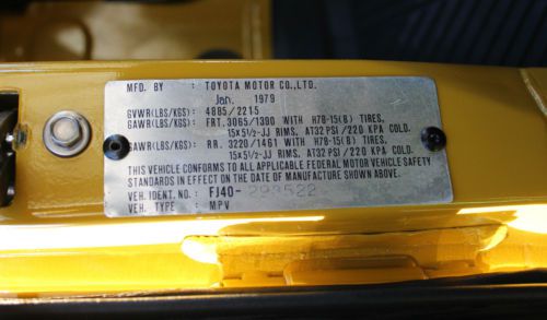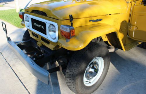 DRIVETRAIN - Toyota 2F series engine (4,200 cc) and 4speed manual transmission - Fully rebuilt to OEM specifications with roughly 8,000 miles on it - New water pump, thermostat - Transmission does not grind, has brand new clutch, flywheel, and master cylinder - Engine has the EGR system deleted - Webber 32/36 2-barrell carburetor with original Toyota air cleaner custom fitted to it - Brand new Diehard battery - NEW OEM Toyota fuel pump, gas tank cleaned and coated on the inside to remove impurities in the tank - OEM distributor, radiator, fan shroud, rust-free exhaust with new muffler - New fluids all around including transmission and transfer case