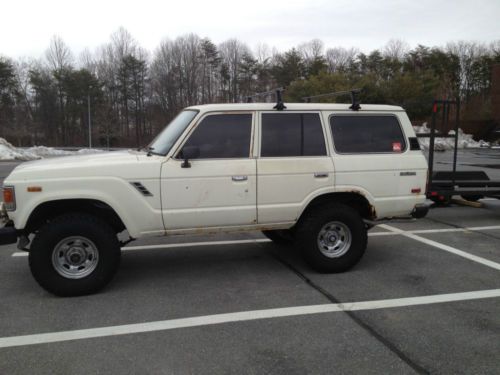 | 1983 Toyota Land Cruiser FJ60.  2F motor with 4 speed Trans.  No Reserve. This is definitely a project vehicle.  I bought from a friend as a project, but have not done anything to it.  Has been sitting since 2011.   Has your typical LC rust.  Quarter panels, tailgate, rain gutters, driver's front door.  Some rust on the frame.  See pics.  Tailgate, upper and lower, are pretty bad Motor has blown head gasket.  Has been de-smogged. HFS lift kit with 33's. Interior is in decent shape.  Driver's side seat has some tearing, but overall pretty decent.   Any questions, let me know. |