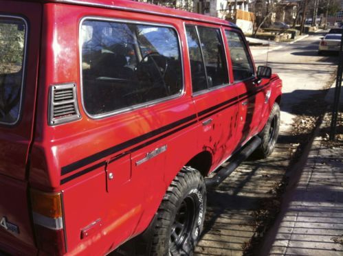 Well loved 1985 Land Cruiser for sale - 3.5" professionally installed lift and newer 33" aggressive tread off-roading tires. Vehicle runs great, is mechanically + structurally sound, no rust on body or frame (professionally undercoated), needs some interior cosmetic work (cargo carpet, driver's seat upholstery, etc). Has a crack in windshield, but it is stable and doesn't impede driving.