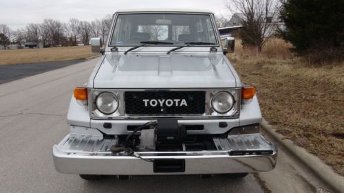 Rust-Free, Original Condition This BJ74 is a rust-free and well-maintained vehicle. The photos show the condition and tell the story. The body has a few small paint chips as might be expected from a 28-year old vehicle. Also, the paint is slightly faded on the upper fenders. The hood was repainted at some point, likely it was faded as well. The complete vehicle is in excellent condition. There is zero rust on the entire body. The interior is very clean, and the undercarriage is also very clean and unmolested. The mechanical condition is excellent as well. Everything on this BJ74 works. The gauges in the clinometer pod all function. The radio is an aftermarket 12 volt AM/FM/Cassette (Japanese band) powered by a 24v-12v converter mounted on the driver kick panel. This converter can also be used to power 12 volt accessories like a CB radio or other add-ons. The A/C system wasn't functioning, and I had it converted to R134a at a professional automotive Heat/AC service shop. The winch works properly, and comes with the original plug-in controller. Even the original toolkit and jack are included. This BJ74 arrived with aftermarket lift shackles that add about 2" to the suspension height of the vehicle. This BJ74 is loaded with options including: