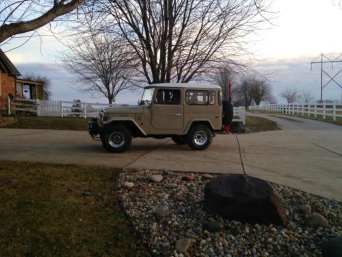 We understand everybody has a budget but our saying is, you can be picky, or you can be cheap, but you cannot be both when it comes to vehicles. Currently located in southern Kansas City, Missouri 64012. Purchased from Clovis, California earlier this year. Still on California title, last title issued was in 2006. Previous owner was meticulous. Vehicle came with several spare parts, with 2 and 3 of a lot of items. Everything was in working order. Vehicle had original paint job, but was faded & older, but an excellent driver. Interior- It is still the same as when we got it and in extremely good shape. The inside of the tub is super clean, almost a time capsule inside. He did add a few toggle switches which work the interior dome lights and exterior led's he added. All 4 new seat covers & foam. New seat cover covers in camo to protect new seat covers. Includes matching camo shifter cover which may make the deal for you. Aftermarket Radio. New Dash Pad Factory roll bar. PO did add gun rack mounts and aluminum interior roof rack which holds included CB Radio which is all easily removable if desired. Exterior/Body It did have a few dings which we repaired and NO rust found just as PO owner stated. Very Rare on an FJ40. It looked like maybe somebody use to sit on top of the front fenders or use them as steps to service engine maybe, as that's where most of the dings were. Removed all parts possible for best possible quality of paint job. Doors, Windows, Lights, Mirrors, moldings, antenna, roof, all glass, ect, it came off to be painted in pieces or to gain access to paint properly. Came with new tail light lenses, front turn signals, hood latches, interior door handles, rear flare gaskets, cowl vent gaskets and several other little items. Most were decent & usable but just faded, or weather checked from age and sun. Old plastics don't age very well, things like the interior door handle bezels were starting to turn white, get brittle and crack. We removed the old pieces and used the new or best parts included. New or excellent condition front door panels. No patches in the floor. It appears original and very nice condition. It was under coated at one point, not sure if it was factory or somebody else did it way back. Most of it is still there but old, brittle & dry. Comes off easy. We would have under coated it and still can, but wanted to show what is really there instead of what could have been hidden with fresh under coat. Sprayed with high end DuPont Water Based Paint, Spies Hecker Clear, Spies Hecker Primer. We considered going with an original style enamel paint but it won't weather as well as a base coat with a polyurethane clear. Plus less maintenance so it seemed like a win/win. Painted everything that's Dune Beige on the outside, inside of all 4 doors, inside and out of lower metal roof with side windows, and stripped & refinished white fiberglass roof. Top still has original looking headliner in it, older but pretty good condition considering. Grill and a few other small pieces were painted black. Frame, bumpers & suspension was already freshly painted. White roof does looks a little weird in photo, it's wet from car wash. Glass is all good to very good condition. Windshield is brand new, I broke the old one taking it out, had a nasty chip that split. Comes with a soft top, never been put on. Comes with soft or half doors. You will see some body filler in photos. We metal finish every ding, dent and so on, but often skim coat each blemish to ensure no minor imperfections seen after refinished. 90% of what you see was sanded off before reprime. If it makes you feel better, shop customers receive a lifetime warranty on repairs and workmanship. Suspension- Previous Owner has been through the suspension and axles. Again, everything looks amazing, brand new, freshly painted axles housings, frame, steer components, you name it. New shackles, hardware, shocks and so on. In photos you can see they are nice but have some gray & white polishing compound which got wet and ran out of cracks & crevices, making it looks a little dirty. Photos don't it justice. Tires & Wheels- New Tires, 31x10.5x15 Cooper S/T's, Wheels look new, may have receipt, very new chrome condition. Drive Train- All Matching #'s Engine and T-Case both recently rebuild by previous owner, documentation included. Transmission shifts great, engine & compartment, accessories & wiring look brand new. New Smog Pump and emissions test passed in CA New Radiator New Battery New Exhaust System and more I'm sure Winch, if I remember correctly, it's a Chicago brand. We didn't have to purchase much to complete it, this is what we did get: New Sylvania H4 sealed beam head lights. New Front & Rear door weather strips New Land Cruiser Emblems for fenders Known Issues: Window rubber seals are older, maybe original but it good shape still. Not splitting or dry rotting. Good enough we could pop them out and reuse after paint. Nice in Appearance.(Not really an issue, just saying). Door windows roll down a little tough. I'm not sure if it needs new felt window guides or if they have been replaced and are still really tight, leaning towards originals. May have dry gears in regulator and just need lube. Haven't diagnosed yet. Does come with an extra window regulator or two, used condition. Reused weather strip between tub & hard top due to spare of the moment ordeal, would have rather replaced it. The left rear wheel flare does have a crack/tear in it,it's an inch or two long. Don't think it shows in any of the photos. Not sure how it got overlooked before paint. I'm sure if it's a deal breaker, we can work something out. Get it repaired or track down a new one. May get it remedied in the mean time. Wow, that was a more than intended but I'm trying to be thorough, and I'm sure I forgot something. I invite anyone seriously interested to come see the vehicle in person. You will appreciate it more, the pictures don't quite do it justice. 816-835-0423 