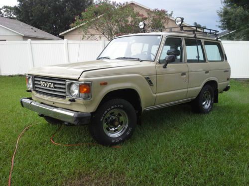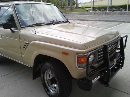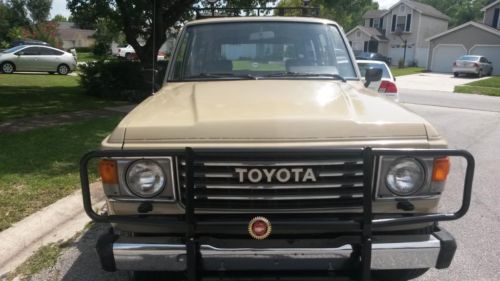 IF YOU ARE LOOKING FOR A NICE EVERY DAY DRIVER FJ 60, THIS ONE IS FOR YOU!!!!!!!!! FOR FJ 40 /FJ 60 enthusiasms persons. This is my 1987 FJ 60 and it is original to the bone. Is not a secret that for the last 20 years the Toyota Land cruisers are the leaders off road, 4 x 4, all terrain machines. Paint is Toyota beige .(original paint with pin stripes) Interiors are brown. Headliner is in mint condition.Chrome is in mint condition as well.(bumpers and original rims) Tires are like 90% of life.(almost new) Original engine F2 with original 4 speed tranny. Engine rebuilded on 2010.(with receipts)App 40 k after rebuild and counting because I drive it in weekends to pull my jet ski. This particular one has the same owner for the last 7 years, that kept service records for it. Some of them are new clutch, new breaks, A/C conversion 134 ( A/C blows cold). Service manual and original owner manual Clean Florida Title Runs shifts and stops well. It is solid rust free.(100%) Dash has no cracks. This bullet proof engine can run half a million miles with pertinent maintenance. This truck have now 240 k, but service is been done always on time (no leaks or smoke). Radio is aftermarket radio. Carriage is clean and rust free, chassis as well. It is sitting in my garage collecting dust so I think is time for someone else to enjoy it this summer. I have a photo bucket album that can be access once we contact each other. This truck is been pampered and always in my garage. Any questions if interest, send me an email with your phone number Tag: Toyota FJ 60, FJ40, Land Cruiser toyota 4x4 On Jun-27-14 at 11:24:51 PDT, seller added the following information: ******** I have the auto check report available, if interested I can email it. I am the third owner ******** |