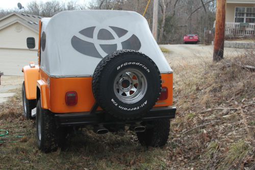 it's a beautiful Orange Pearl color with Gray interior with Orange inserts all custom.. this is a very custom FJ40 and is a ton of fun.. it gets all kinds of attention i can hardly put gas in it without someone coming up to look at it and talk to me about it.. and when going down the road i get thumbs up all the time also.. one of a kind 4x4 FJ40 it's got a 350/383 Chevy Motor and 350 Automatic Transmission the inside is all custom done in Gray and Orange Chrome AWC Rims with BF Goodrich 33x12.50 R15's Custom Soft Top with Toyota Emblem as the back window.. but it's much more fun top down of course :) Sony Player and Speakers there is a video of this FJ40 online that will give you a better idea then pics can of what this beauty is like a video can be seen on youtube just go there and put in kGEcJehCdE0 this FJ40 was Appraised at $19,225.00 but i have set the reserve much lower simply because i want someone to enjoy this beauty as much as i have i have never had one problem with this sweet toy and like all my toys i take care of them. the only reason i'm selling is because i'm getting an expedition ready RV for some off road back county camping and i have to make room and get rid of some toys.. i really hate to see her go but it's just time for a change if you have questions ask away and i'll get back with you as quick as i can and please be a serious bidder.. i don't want people bidding who don't have the money in hand ready to pay thanks for your time  |